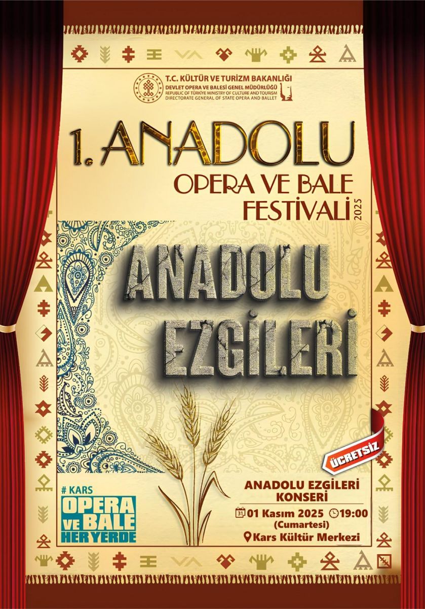 Karslı sanatseverlerin yoğun ilgi göstermesi beklenen etkinlikte, Devlet Opera ve Balesi sanatçıları sahne alacak. Konser, hem klasik müzik hem de Anadolu’nun yerel ezgilerini buluşturarak izleyicilere unutulmaz bir müzik ziyafeti sunacak.