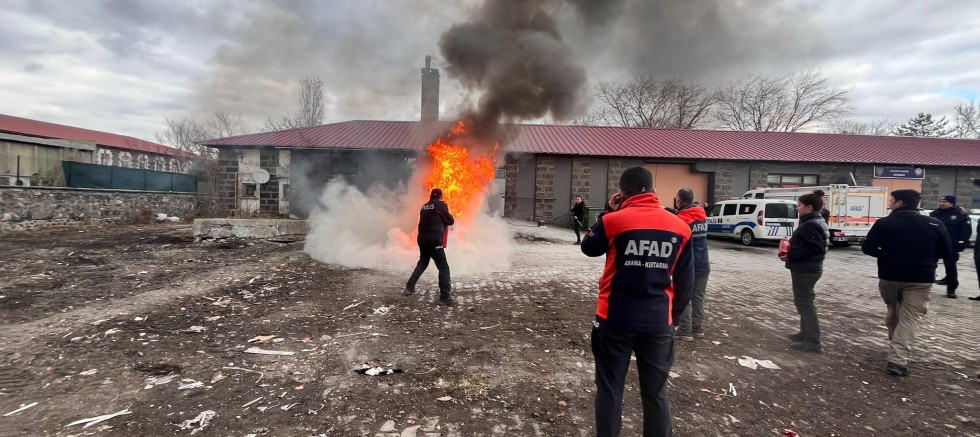 AFAD Kars İl Müdürlüğü, 2024 eğitim faaliyetleri kapsamında Kars Emniyet Müdürlüğü personeline afet ve yangın farkındalık eğitimi verip yangın söndürme tatbikatı gerçekleştirdi.