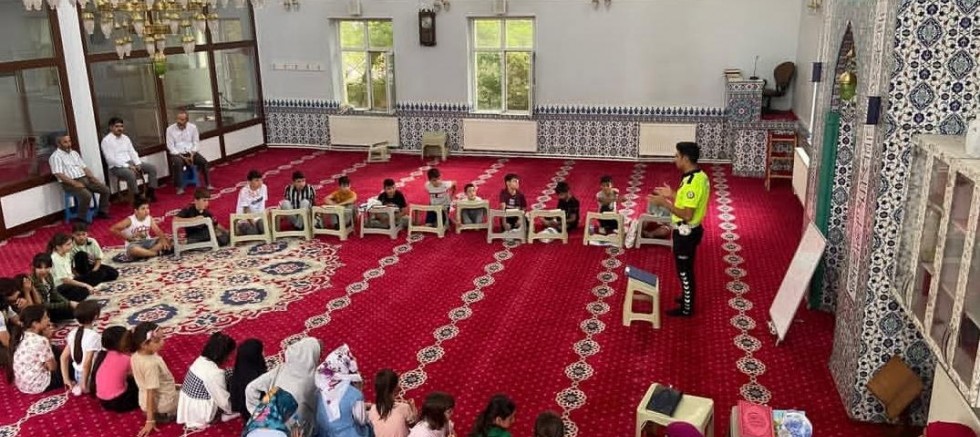 Akyaka İlçe Emniyet Amirliği Trafik Denetleme Büro Amirliği, İstasyon Merkez Camii Yaz Kur’an Kursu’na katılan öğrencilere trafik güvenliği konusunda kapsamlı bir eğitim verildi.