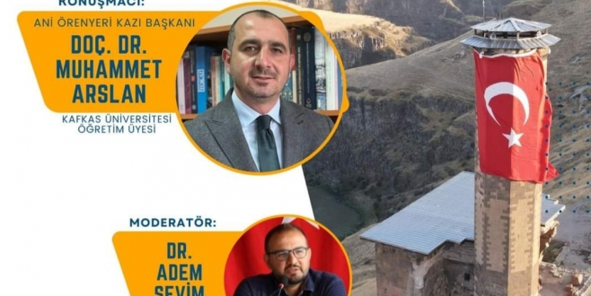 Kars Kafkas Üniversitesi Öğretim Üyesi Ani Ören Yeri Kazı Başkanı Doç.Dr.Muhammet Arslan, "Bozok Üniversitesi’nin ev sahipliğinde YOBÜ Öğretim Elemanı Dr. Adem Sevim Moderatörlüğünde yine konuşmacı olarak Ani’yi konuşacağız." dedi.