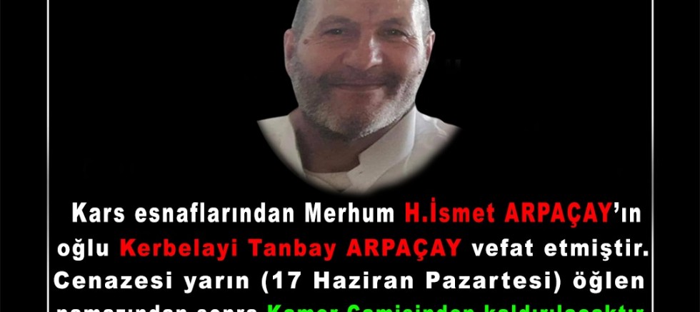 Kars esnaflarından merhum H. İsmet Arpaçay’ın oğlu Nejdet Arpaçay'ın kardeşi Kelbayı Tanbay Arpaçay vefat etti.