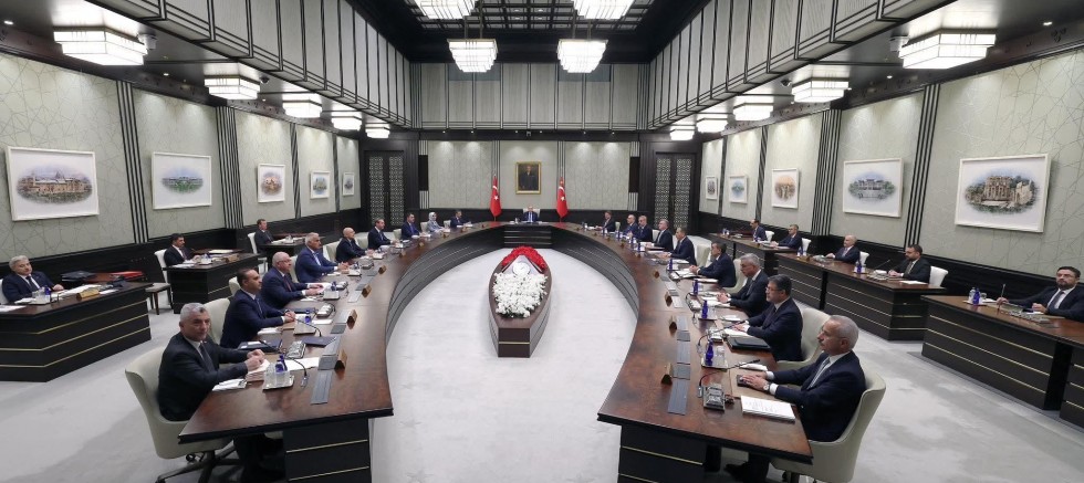 Cumhurbaşkanı Recep Tayyip Erdoğan başkanlığında Cumhurbaşkanlığı Külliyesi’nde toplanan Kabine, saat 14.10’da çalışmalarına başladı. Kabine toplantısında, “Terörsüz Türkiye” hedefi doğrultusunda TBMM’de yürütülen çalışmalar ve bölgesel gelişmeler masaya yatırılıyor.