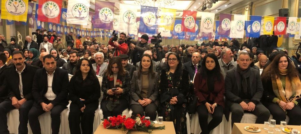 DEM Parti Eş Genel Başkanı Tülay Hatimoğulları Oruç, bir düğün salonunda yapılan kongrede, “Türkiye çok çekti. Türkiye acılar çekti. Kürt halkı acılar çekti. Kürt halkı gençlerini kaybetti, Türk halkı gençlerini kaybetti ve bizim buradaki en büyük muradımız artık bu kan ve gözyaşı dursun, ortak yaşamı birlikte inşa edelim. Bizler barışı en çok isteyenleriz. Asla rehavete kapılmayalım.” dedi.