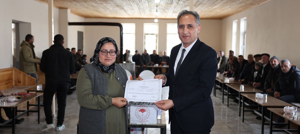 Kars Tarım ve Orman Müdürlüğü, Tarım ve Orman Bakanlığı Finansmanı ile yürütülen “Kadın Çiftçiler Öğreniyor Ekonomik ve Sosyal Olarak Gelişiyor Projesi” kapsamında Digor İlçesi Kocaköy Köyü'nde 20 kadın çiftçiye Sağım Hijyeni ve Sanitasyon Kursunu tamamlayarak sertifikaları, Tarım Müdürü Enver Aydın tarafından törenle verildi.