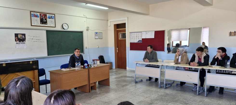 Kars Gülahmet Aytemiz Güzel Sanatlar Lisesi, kariyer günleri kapsamında önemli bir etkinliğe imza attı. Okul Müdürü Sait Gürek ve Türk Dili ve Edebiyatı Öğretmeni Adem Kaya'nın organizasyonu ile gerçekleştirilen etkinlikte, ilimiz yazar, şair ve Türk Dili ve Edebiyatı Öğretmeni Murat Aybirdi öğrencilerle buluştu.