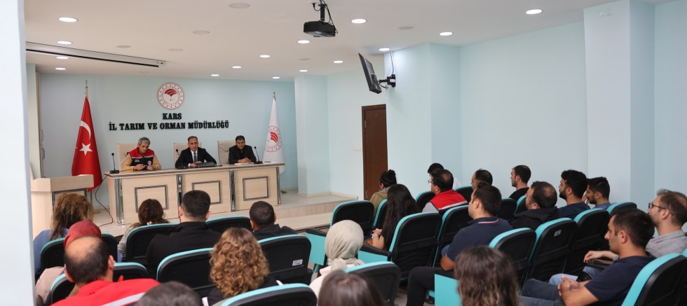 Kars Tarım ve Orman İl Müdürü Enver Aydın başkanlığında, Kars ve ilçelerindeki Tarım ve Orman İl ve İlçe Müdürlükleri’nde görevli Veteriner Hekimler, hayvan sağlığı ve hastalıklarla mücadele konularında bilgilendirme toplantısında bir araya geldi.
