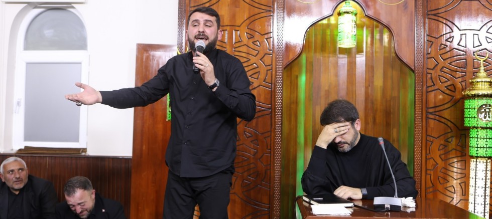 Can Azerbaycan'dan program için Kars’a gelen Ehlibeyt Alimi Hacı Ramil Bedeov'un günün anlam ve önemini belirten konuşmasının ardından Azerbaycanlı Ehlibeyt Meddahı Perviz Hüseyni'nin sinezen ve mersiyeler okudu.