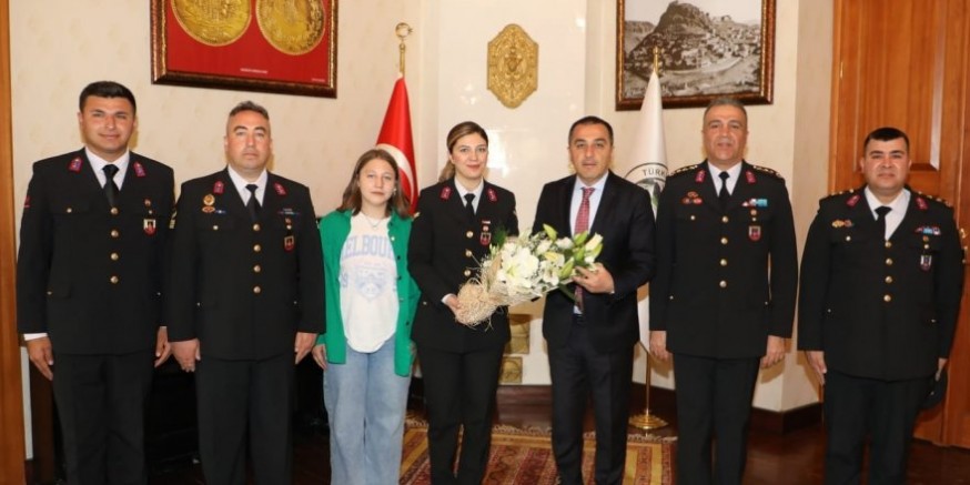 Kars Valisi ve Belediye Başkan Vekili Türker Öksüz, Jandarma Teşkilatı’nın 184. Kuruluş Yıldönümü vesilesiyle Kars İl Jandarma Alay Komutanı Albay Hıdır Ayçiçek ve beraberindeki heyeti makamında kabul ederek, başarılı çalışmalarından dolayı teşekkür etti ve görevlerinde başarılar diledi.