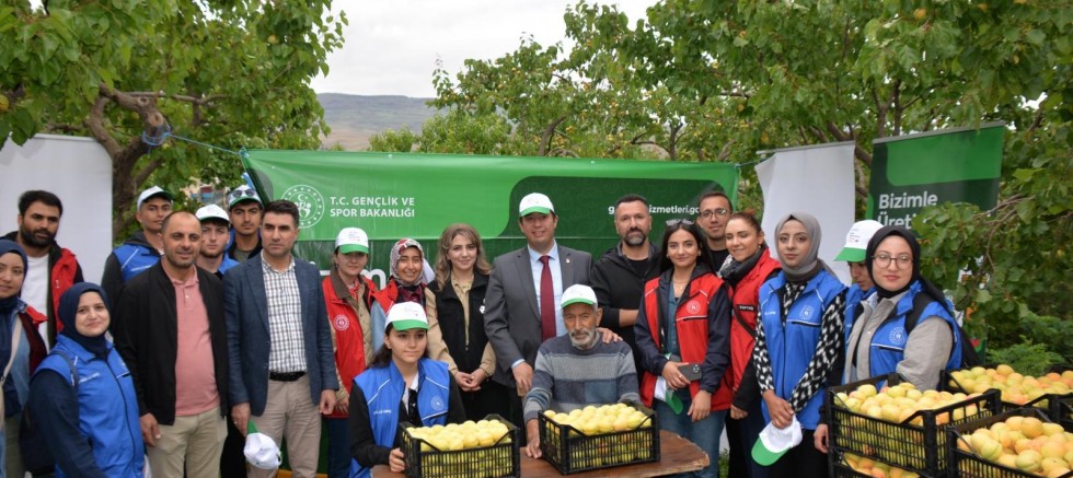 Bölge çiftçilerine destek olmak ve gençlerde tarıma yönelik farkındalık oluşturmak amacıyla düzenlenen etkinlikte, gönüllü gençler ağaçlardan kayısı toplayarak hem doğayla iç içe vakit geçirdi hem de üretime katkı sundu.