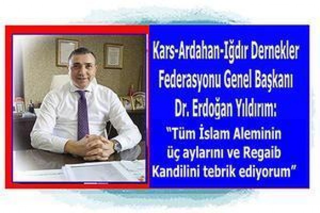 Kars Ardahan Iğdır Dernekler Federasyonu (KAIFED) Genel Başkanı Dr. Erdoğan Yıldırım, mübarek 3 ayların başlangıcını simgeleyen Regaib Kandili dolayısıyla mesaj yayımladı.
