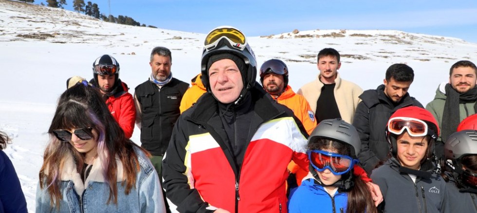 Daha sonra Vali Polat, kayak eğitimi alan çocukların eğitimlerine katılarak, onlarla birlikte kayak yaptı.