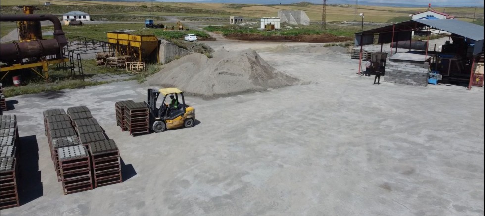 Kars Belediyesine ait kilit parke ve bordür imalat tesisi bakım ve onarımın ardından yeniden üretime başladı.