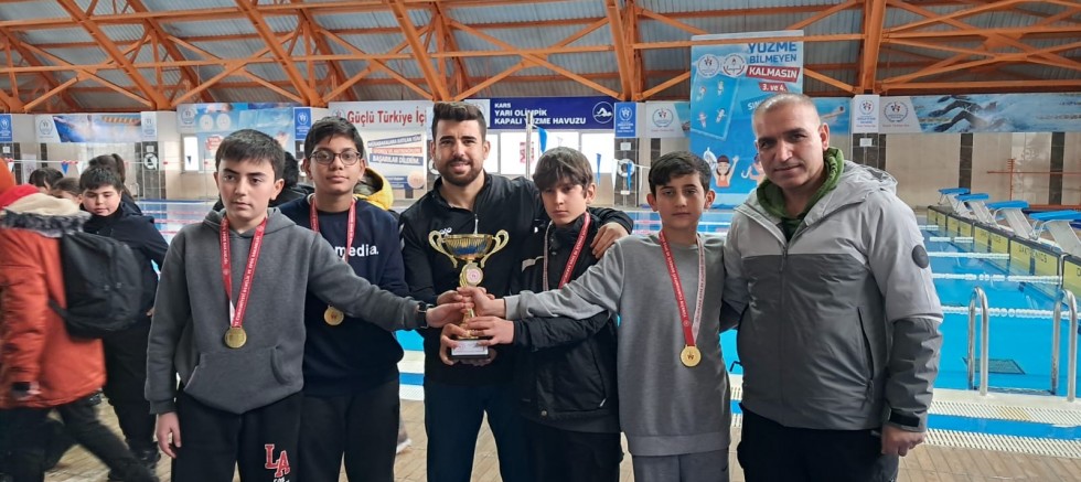 Kars'ta düzenlenen Okul Sporları Yüzme Yarışması'nda Cevriye Tatış Ortaokulu, yıldız erkekler kategorisinde gösterdiği üstün başarı ile il şampiyonu oldu.