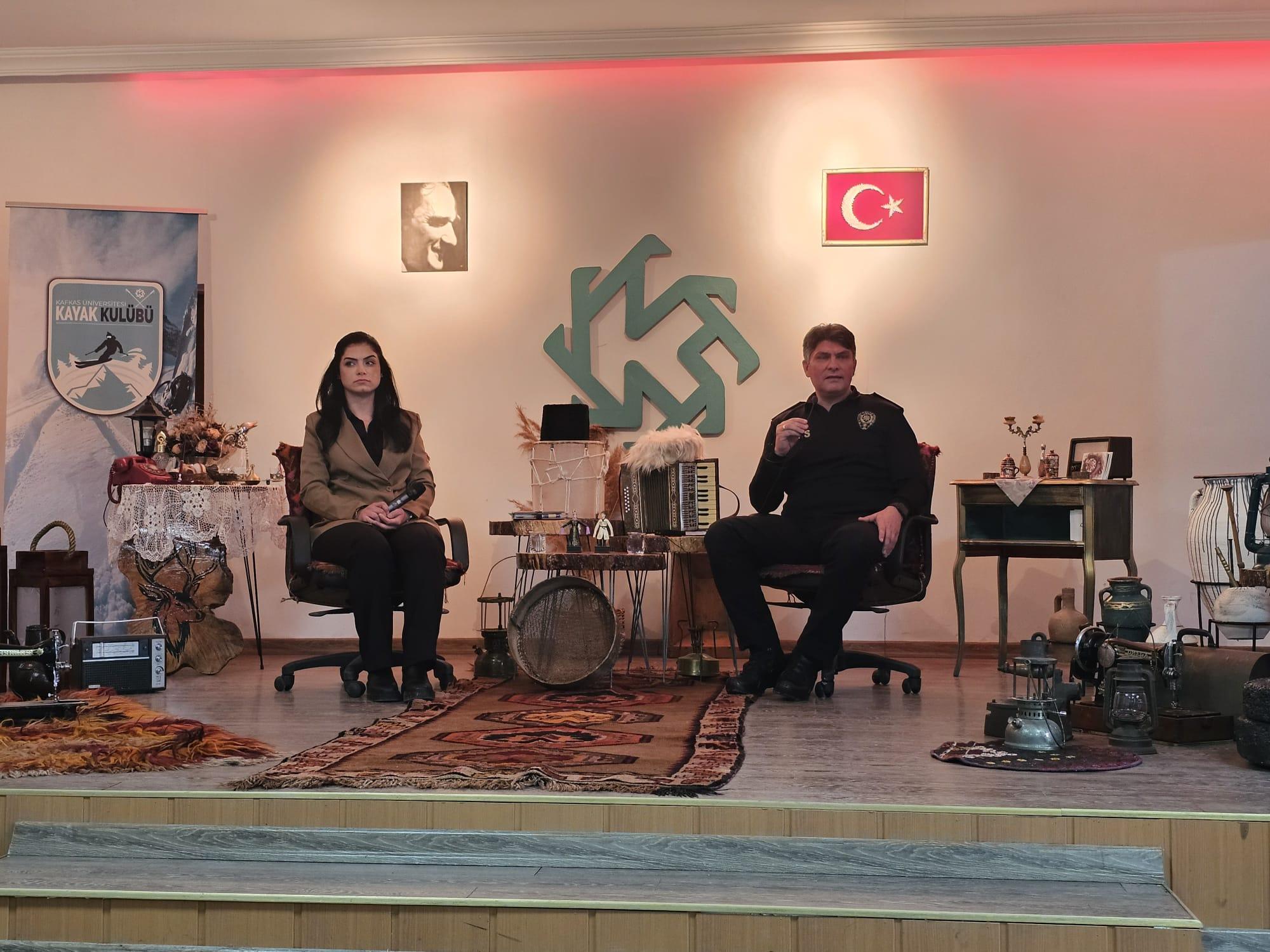 Kars İl Emniyet Müdür Yardımcısı Dr. Alptekin Aslantaş ile Siber Suçlarla Mücadele Şube Müdürü, Türk Polis Teşkilatı’nın 181. kuruluş yıl dönümü dolayısıyla Kafkas Üniversitesi Kağızman Meslek Yüksekokulu öğrencileriyle bir araya gelerek kapsamlı bir söyleşi programı gerçekleştirdi.