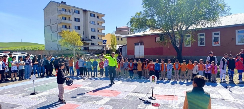 Akyaka İlçe Emniyet Amirliğinde görevli trafik polisleri, sınıf ortamında verilen teorik eğitimlerde çocuklara trafik kurallarını sade ve anlaşılır bir dille anlattı. Öğrencilerin sorularını da yanıtlayan polis memurları, yaş gruplarına uygun videolar ve sunumlar eşliğinde çocukların ilgisini çekecek şekilde bilgilendirme yaptı.