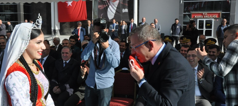 İlk tören Hükümet Konağı önündeki Atatürk Anıtı ve tren garının önündeki Kazım Karabekir Paşa anıtına eş zamanlı çelenk konulmasıyla başladı. Vali ve Kars Belediye Başkan Vekili Ziya Polat günün anlam ve önemine belirten bir konuşmasında, "Bugün, Gazi Mustafa Kemal Atatürk’ün önderliğinde başlatılan Kurtuluş mücadelesinde tarihin hiçbir döneminde esareti kabul etmeyen Gazi Karslıların kahramanlık günüdür. Bugün, bundan 103 yıl önce Gazi Karslıların, Kazım Karabekir Paşa ve komutasındaki kahramanların destan yazarak, bu güzel vatan toprağında düşmanın namahrem elini kırdığı, ezansız ve bayraksız olamayacağını, esaret altında yaşayamayacağını tüm dünyaya haykırdığı gündür. Bugün, Gazi Kars’ımızın gurur günüdür. Bugün Kars’ımızın Bayramıdır. Bugün, Karslılar olarak Gazi Kars’ımızın düşman işgalinden kurtuluşunun 103’üncü yıldönümünü kutlamanın gurur ve sevincini yaşamaktayız. Hepinizi en kalbi duygularımla, saygıyla, sevgiyle selamlıyorum. 103’üncü kurtuluş günümüz kutlu olsun. Tarihi, binlerce yıl öncesine dayanan, birçok medeniyetin izlerini taşıyan ve asırlardan beri birçok Türk boyuna ev sahipliği yapan Gazi Karsımız, ilk çağlardan günümüze kadar olan tarihi süreçte son derece önemli jeostratejik ve jeopolitik bir merkez olmuştur. Selçuklu Sultanı Alparslan, 1064 yılında Ani’yi fethederek Anadolu kapılarının Türklere açılmasına vesile olmuştur. Türk Milleti olarak yedi düvele karşı bağımsızlık meşalesini yaktığımız milli mücadelemizin ilk milli teşkilatları ve ilk milli hükümetini kuran, yine Kars olmuştur. Cenub-i Garbi Kafkas Hükümeti; Mondros Mütarekesi’nden sonra Doğu Anadolu'da kurulan, anayasası, meclisi, hükümeti olan, bağımsız cumhuriyet olarak kurulan bir devlettir. Serhat Karsımız, bu yönüyle de şanlı tarihimizde çok önemli bir coğrafyayı temsil etmektedir. Birinci Dünya Savaşı’nın Kuzey Kafkasya cephesi olan Kars, yaklaşık 40 yıl Rus işgalinde kalmış, Doğu Cephesi Komutanı Kazım Karabekir Paşa’nın emrindeki kahraman Mehmetçikler sayesinde 30 Ekim 1920’de düşman işgalinden kurtarılmış ve esaret zincirleri kırılmıştır. Bağımsızlık ateşini 30 Ekim’de yakan hürriyet sevdalısı ecdadımız, Kars’ı vatan topraklarına katan kahramanlarımız, emin olsunlar ki! Gölgesinde yaşamaktan büyük onur ve gurur duyduğumuz Kars’ın Kalesindeki ay-yıldızlı şanlı al bayrağımız, ilelebet dalgalanacak, Anadolu’ya güneş gibi parlamaya devam edecektir. Geçmişimizden aldığımız güçle, geleceğe doğru emin adımlarla ilerliyoruz. 103 yıl önce, topla, tüfekle canımızı ortaya koyarak verdiğimiz bağımsızlık mücadelesinin ardından Kars, vatansever insanların, her türlü kısır çekişmelerden uzak, birlik-beraberlik, hoşgörü içerisinde, mutlu ve huzurlu şekilde birlikte yaşadığı emsalsiz bir şehir olmuştur. Böyle bir şehirde görev yapmaktan, böyle kadim bir şehre hizmet etmekten gurur duyduğumu özellikle bilmenizi istiyorum. Sevdamızın adı Gazi Kars, sevdamızın adı Türkiye’dir. Kurtuluş destanının üzerinden geçen 103 yılda Karsımız, sahip olduğu tarihi, kültürel değerleri, doğal güzellikleri, turizm, tarım ve hayvancılık potansiyeliyle ülkemizin en önemli illeri arasına girmeyi başarmıştır. Gazi Kars, fedakâr ve çalışkan insanlarıyla bu önemli rolünü sürdürecek, ülke kalkınmasına, birliğine ve dirliğine olan katkısını daha da artıracaktır. Gazi Kars’ımızın; ekonomik kalkınması, sosyal ve kültürel yönden gelişmesi, yaşanabilir güzel bir şehir kimliğine kavuşması, vatandaşlarımızın refahının yükseltilmesi için var gücümüzle çalışıyoruz. Gazi Kars’ımızın cazibesi her geçen gün daha artmaktadır. İnanıyoruz ki Kars, her geçen gün daha çok gelişecek, daha yaşanabilir bir şehir olacak. Kars’ımız, Türkiye Yüzyılı’nın parlayan yıldızı olması için hep birlikte çalışacak, hep birlikte başaracağız. Bu duygu ve düşüncelerle; Gazi Kars’ımızın düşman işgalinden kurtuluşunun 103’üncü yılını tekrar kutluyorum. Başta Gazi Mustafa Kemal Atatürk olmak üzere, Kars’ın kurtarıcısı Kazım Karabekir Paşa ve bu toprakları bizlere vatan yapan tüm şehitlerimizi rahmet, gazilerimizi minnet ve saygıyla anıyorum." diye konuştu.