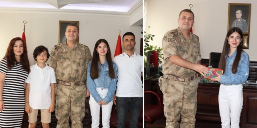 Kars İl Jandarma Komutanı Albay Fatih Cemal Kiper, Azra Akgün'ü ve ailesini tebrik ederek YKS sınavında başarılar diledi.