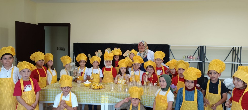 “Hayata Dair Ne Varsa, Eğitimin Konusudur” anlayışıyla gerçekleştirilen Yemek Atölyesi çalışmasında Yaz Okuluna devam eden yarınlarımız olan çocuklarımız için Kuran Kursu öğreticilerinin rehberliğinde çeşitli denemeler gerçekleştirildi.