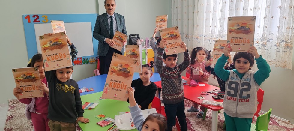 Ziyarette minik öğrencilere Diyanet İşleri Başkanlığı yayınlarından "Çocuklar İçin Kudüs Etkinlikleri’’ kitabını hediye eden Müftü Bayram, minik yavrularımızın yetişmelerinde emeği geçen öğreticilere teşekkür etti.