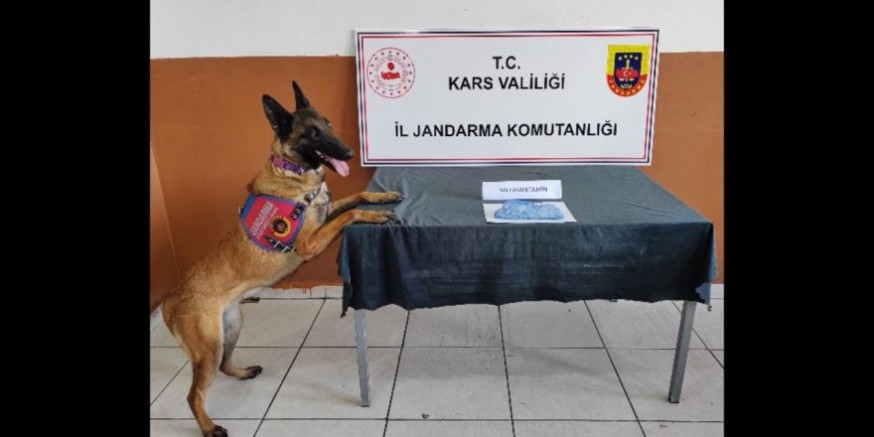 08 Mayıs 2024 günü saat 15.00 sıralarında, Digor ilçesi Sorguçkavak Jandarma Karakol Komutanlığı Yol Kontrol ve Arama Noktasında, Ağrı ilinden Kars iline hareket etmekteyken makul şüphe üzerine durdurulan bir araçta, uyuşturucu madde arama köpeği Dam ile yapılan aramada, E.İ.B. (E-28) isimli şahsa ait valiz içerisinde, ayakkabı astarının altına zulalanmış şekilde (168) gram Metamfetamin maddesi ele geçirilmiştir.