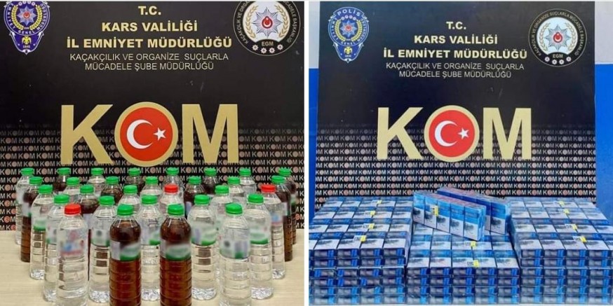 Kars merkez, Kağızman ve Sarıkamış'ta çok sayıda adrese operasyon düzenleyen polis, 30 litre sahte alkollü içki, 430 paket gümrük kaçağı sigara, 2 bin doldurulmuş makaron, gümrük kaçağı cep telefonu ve 2 kilogram gümrük kaçağı nargile tütünü ele geçirildi. Operasyonda 8 şüpheli gözaltına alındı.