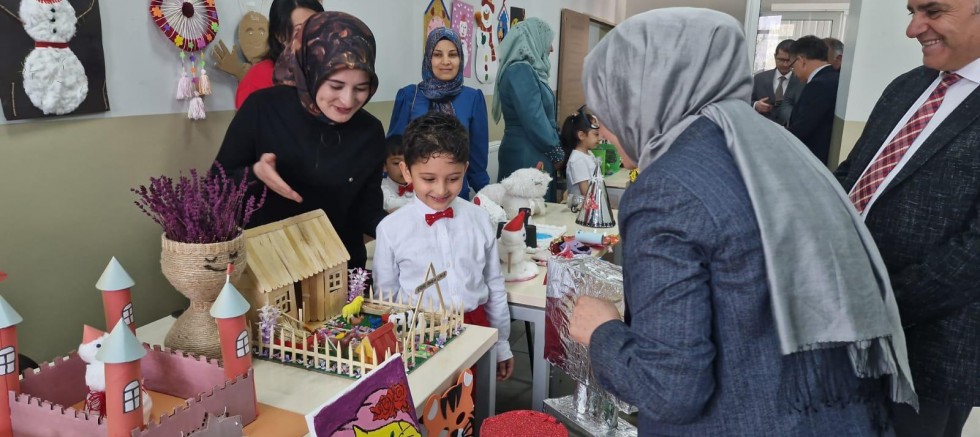 Minik öğrencilerin anneleriyle birlikte hazırladıkları el işleri, resimler ve çeşitli sanatsal çalışmalar, ziyaretçilerden büyük beğeni topladı. “Annemin Eli Benim Elim” temasıyla hazırlanan sergi, hem öğrenci-veli bağını güçlendirmeyi hem de aile katılımını artırmayı amaçladı.