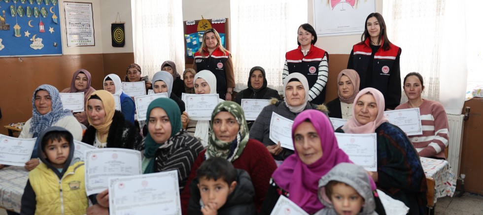 Arpaçay ilçesine bağlı Değirmenköprü Köyü'nde süren eğitimlerin yanı sıra, kursu başarıyla tamamlayan yetiştiricilere sertifikaları da teslim ediliyor.