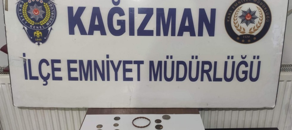 Kars Emniyet Müdürlüğü, Kağızman İlçe Emniyet Müdürlüğü ekipleri ihbar üzerine elinde tarihi eser olduğu tespit edilen A.K. (59)’nin konutu, iş yeri ve otomobilinde eş zamanlı arama gerçekleştirdi.