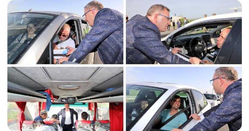 Denetimlere katılan Vali Ziya Polat, sürücülere uyarılarda bulundu, çocuklara bayram hediyesi verdi.