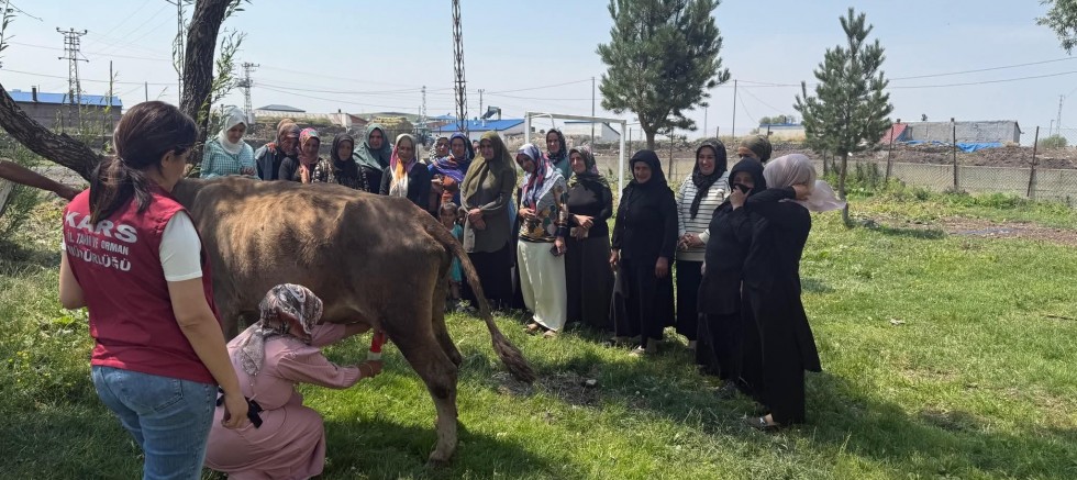 Kars Tarım ve Orman İl Müdürlüğü tarafından, merkez ilçeye bağlı Ölçülü Köyü’nde kadın çiftçilere yönelik “Süt Sağım Hijyeni ve Sanitasyon” eğitimi düzenlendi.
