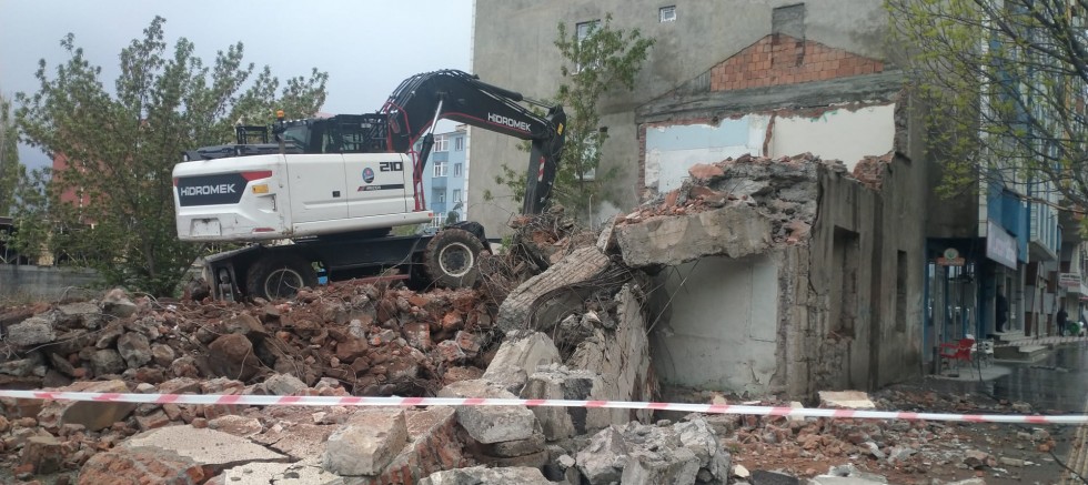 Kars'ta yabancı madde kullanımı yaparak metruk binalara girip yangınlara ve zararlara neden olan madde bağımlılarının uğrak yeri olan metruk yapı yıkım çalışmaları devam ediyor.