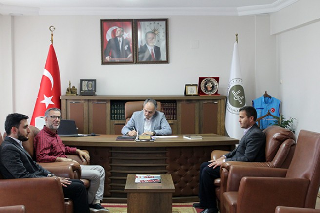Kurban bağış kampanyasına destek olan personel bağış makbuzunu Müftü Bayram’ın elinden aldılar.