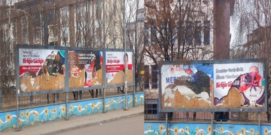 Cumhur İttifakı Kars Belediye Başkan Adayı Prof. Dr. Ötüken Senger'in seçim afişleri ve billboardları tahrip edildi.