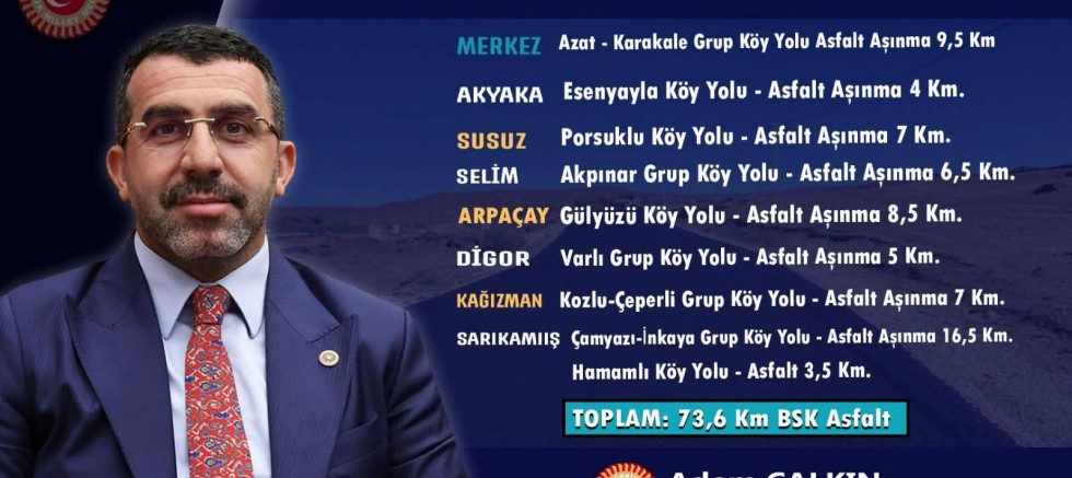 Yatırımın duyurusunu yapan AK Parti Kars Milletvekili Adem Çalkın, projeye ilişkin yaptığı açıklamada şu ifadelere yer verdi: “Köylerimizin ulaşım altyapısını güçlendiriyor, vatandaşlarımızın yaşam kalitesini yükseltiyoruz. Sekiz ilçemizde başlattığımız bu asfalt çalışmalarıyla, Kars’ımızın her köşesine hizmet götürmeye devam ediyoruz. Tüm hemşerilerimize hayırlı olsun.”