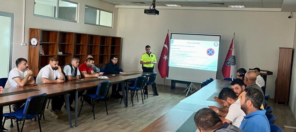 Eğitimde, okul servis şoförlerinin trafik güvenliği kurallarına uymaları, Okul Servis Araçları Yönetmeliği’nde belirtilen yükümlülükleri yerine getirmeleri ve öğrencilerin güvenli taşımacılığını sağlamaları konularında bilgilendirme yapıldı.