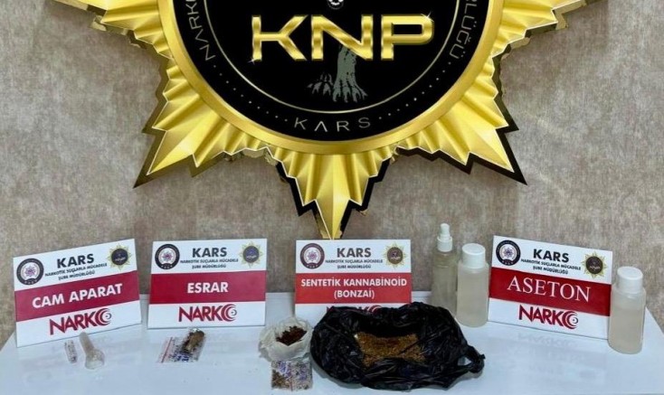 İl Emniyet Müdürlüğü Narkotik Suçlarla Mücadele Şube Müdürlüğü ekipleri, 'torbacı' diye tabir edilen sokak satıcıları ile uyuşturucu madde kullanan şüphelilere yönelik operasyon düzenledi. Kars merkezde düzenlenen operasyonda Ç.Ş (29), R.Y.A (24) ve A.K (21) gözaltına alındı. Şüphelilerin üstlerinde ve evlerinde yapılan aramalarda, 71,34 gram bonzai, 2,6 gram esrar, 1,81 gram metamfetamin, bonzai yapımında kullanılan sıvı madde, uyuşturucu madde seyreltmek için kullanılan aseton ve 3 cam aparat ele geçirildi.