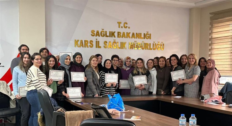 Kars’ta İl Sağlık Müdürlüğü Halk Sağlığı Başkanı Uzm.Dr. Medine Gözde Üstündağ ve Sağlık Hizmetleri Başkan Vekili Sacide Kılıç tarafından, yeni doğan, 112 Acil Yardım Hizmetlerinde çalışan ve yeni doğana yönelik girişimde bulunan ikinci basamakta hekim dışı sağlık personeline "Temel Yeni Doğan Bakımı Eğitimi" verildi.