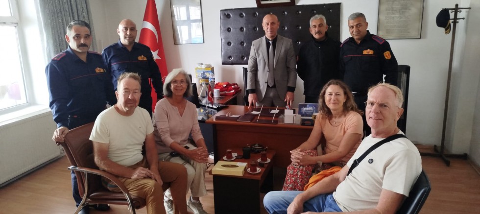 Yangında kurtarılan Hollandalı turistler, Kars Belediyesi İtfaiye Müdürlüğü'ne giderek, itfaiye erlerine teşekkür ettiler.