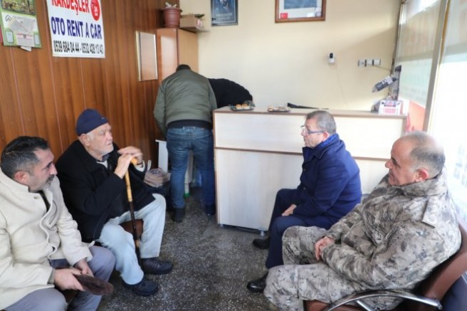 Vatandaş ve esnaflarla bir arada olan Vali Polat, esnaf ziyaretini sürdürdü.Esnaflarla sohbet eden Vali Polat, istek ve taleplerini dinledi.
