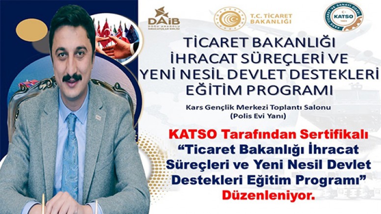 Kars Ticaret Ve Sanayi Odası (KATSO) ev sahipliğinde Ticaret Bakanlığı ve Doğu Anadolu İhracatçılar Birliği (DAİB) iş birliği ile “Ticaret Bakanlığı İhracat Süreçleri ve Yeni Nesil Devlet Destekleri Eğitim Programı” düzenleniyor.