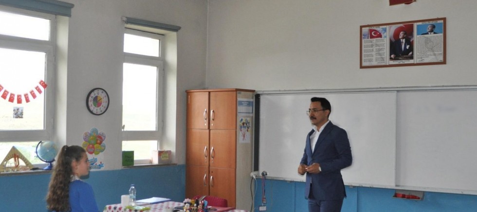 Ziyaret kapsamında sınıfları gezerek öğrencilerle sohbet eden Kaymakam Demirtaş, çocuklara dersleriyle ilgili sorular yöneltti, kitap okumanın önemine dikkat çekti.