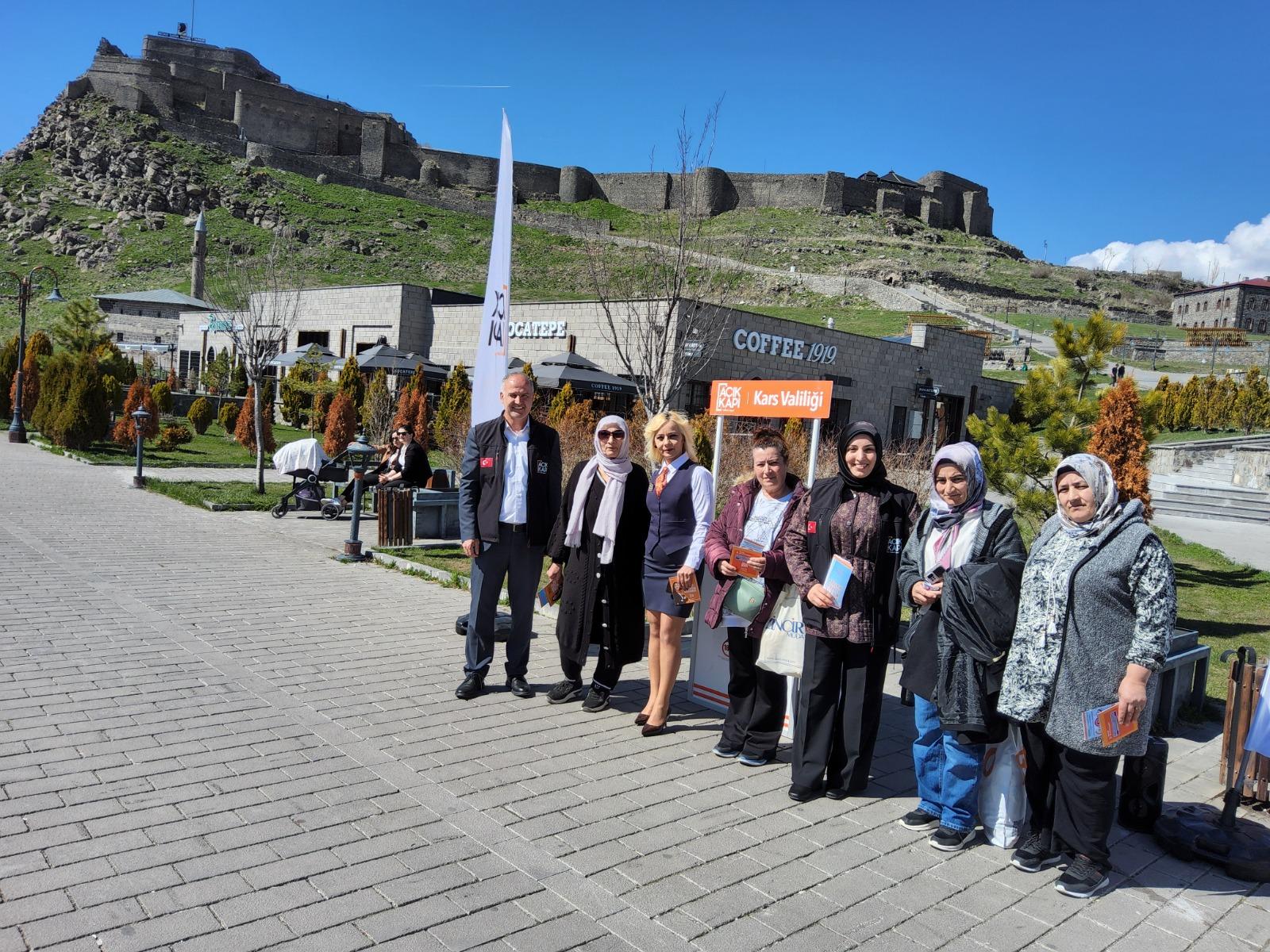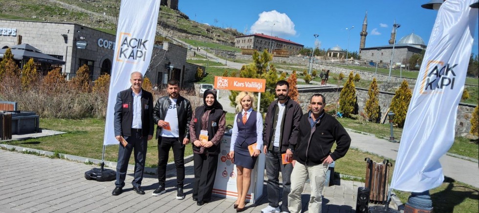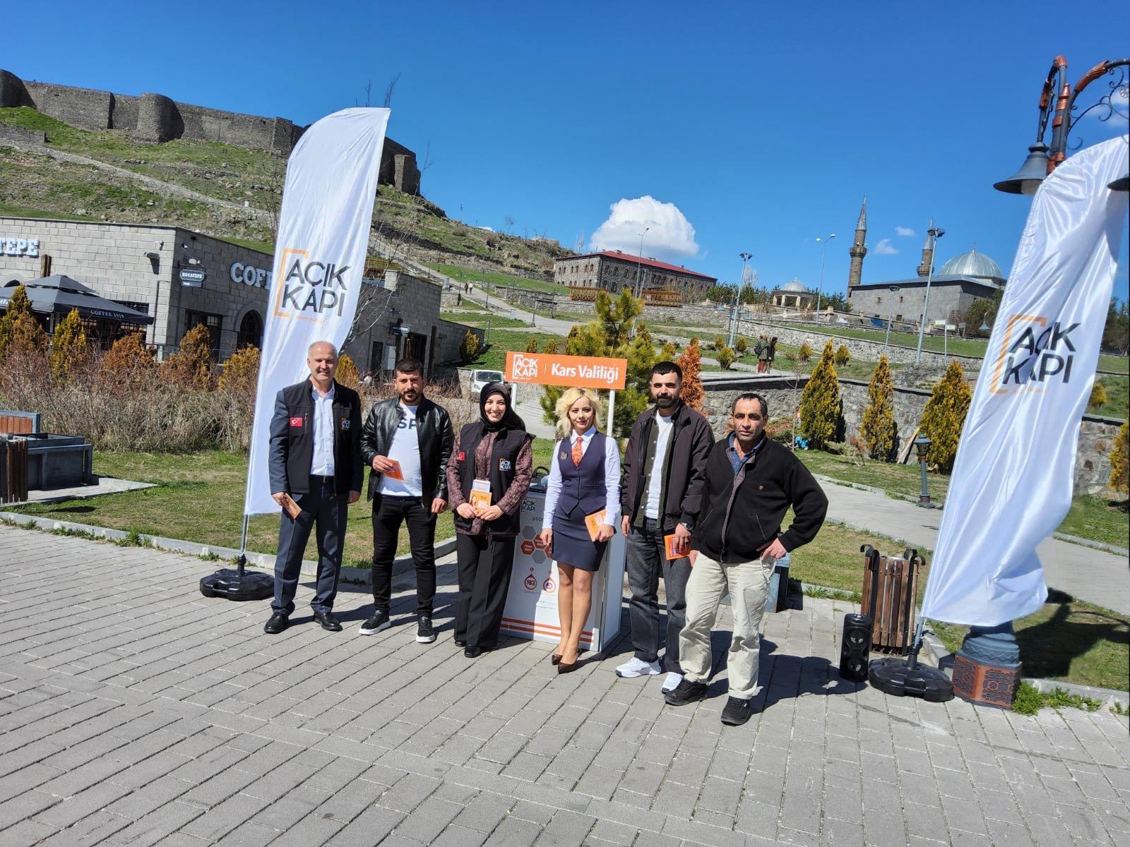 Tanıtım faaliyetleri kapsamında Cumhuriyet Millet Kıraathanesi ile Gazi Kars Bedesteni bölgesinde kurulan stantlarda vatandaşlara Açık Kapı sistemi hakkında detaylı bilgiler veriliyor.