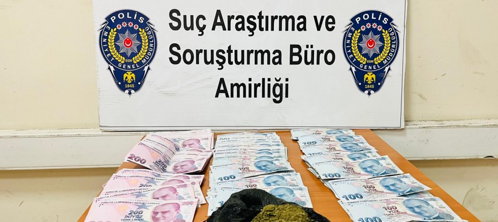 Yapılan aramada, beyaz kağıda sarılı vaziyette uyuşturucu madde olduğu düşünülen üç adet hap ele geçirilirken, İ.K.’nın valizinde yapılan kontrollerde ise siyah poşete sarılı toz esrar maddesi ve 41 bin 300 TL nakit para ele geçirildi.