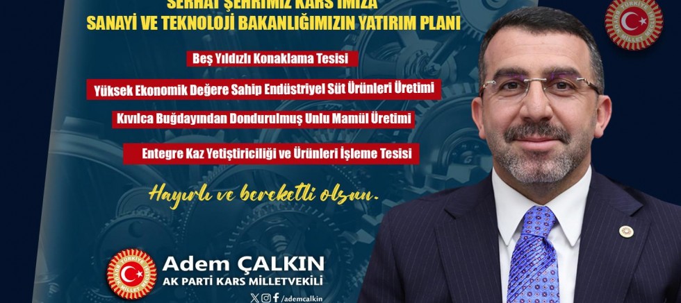 AK Parti Kars Milletvekili Adem Çalkın, Sanayi ve Teknoloji Bakanlığı tarafından hazırlanan Kars Yatırım Planının bugün Resmi Gazete’de yayımlanarak yürürlüğe girdiğini duyurdu.
