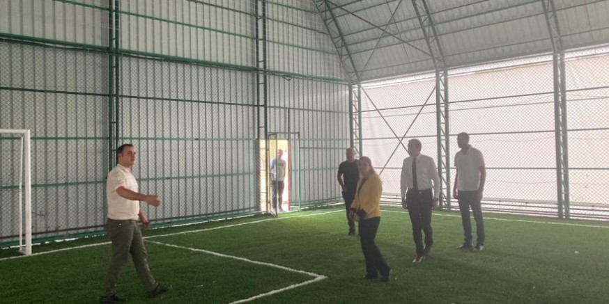 Susuz Kaymakamı Halis Hacıismailoğlu, tadilatı yapılmaya başlanan ve son aşamaya gelen halı sahada incelemelerde bulundu.