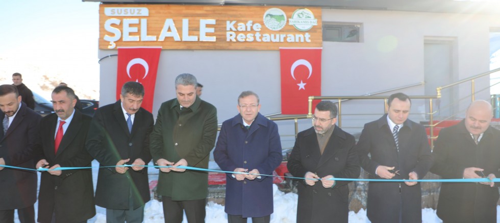 Gazi Kars'ımızın eşsiz doğal güzelliğe sahip turizm destinasyonu ve vatandaşlarımızın gözde mesire alanlarından olan Susuz Şelalesi'nde vatandaşlarımızın hizmetine sunulan Şelale Kafe & Restaurant'ın açılışı, Vali Ziya Polat ve AK Parti Kars Milletvekili Adem Çalkın tarafından gerçekleştirildi.