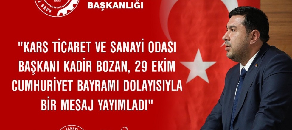 Kars Ticaret ve Sanayi Odası Yönetim Kurulu Başkanı Kadir Bozan, 29 Ekim Cumhuriyet Bayramı dolayısıyla mesaj yayımladı.