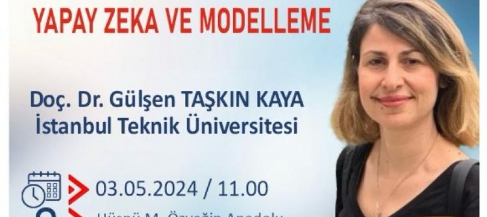 TÜBİTAK Bilim Söyleşileri Yapay Zeka ve Modelleme, İstanbul Teknik Üniversitesi Öğretim Görevlisi Doç.Dr.Gülşen Taşkın Kaya'nın katılımıyla Kars Hüsnü M. Özyeğin Anadolu Lisesi Konferans salonunda 03.04.2024 Cuma günü saat: 11.00'de yapılcaktır.