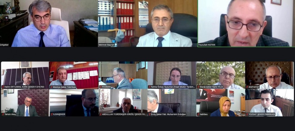 Zoom platformu üzerinden gerçekleştirilen toplantıya TÜRKŞEKER Genel Müdürü Dr. Muhiddin Şahin başkanlık ederken, şeker fabrikalarının ziraat müdürleri de katılım sağladı.