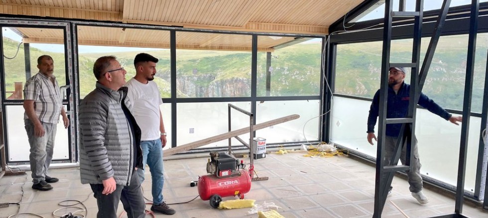 Kars Valisi Ziya Polat, kentin önemli turizm destinasyonlarından biri olan Susuz Şelalesi'ni ziyaret ederek, Şelale Kafe & Restoran’a eklenti olarak yapımı süren kış bahçesi inşaatında incelemelerde bulundu.